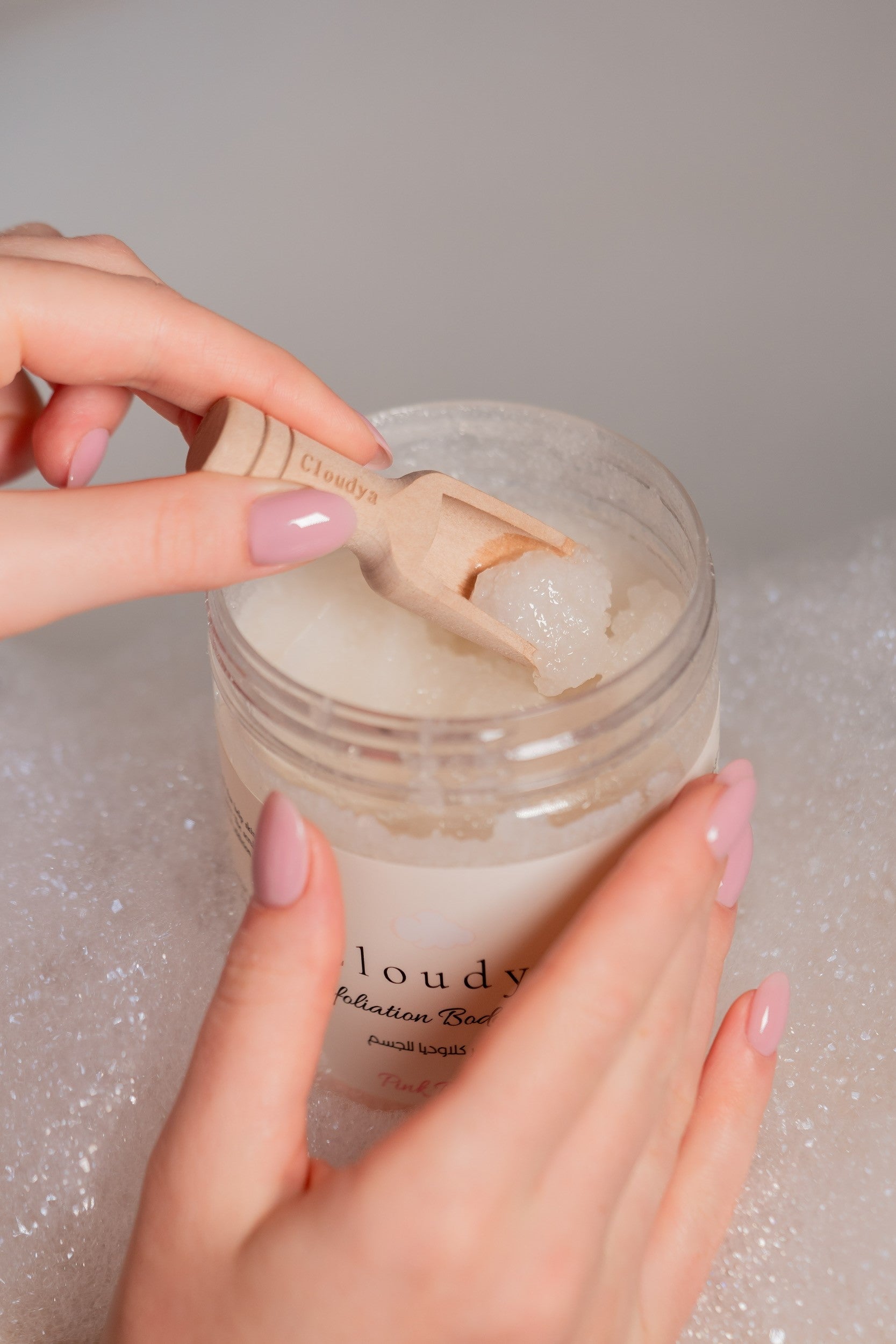Cloudya’s luxurious scrub contains the most important vitamins, butters, and oils that help skin elasticity and unify skin tone, as well as remove dead cells and traces of dark spots. The scrub works to renew the layers of the skin for velvety, tight skin, freshness and bright skin, in addition to the luxurious scent. (500g)
